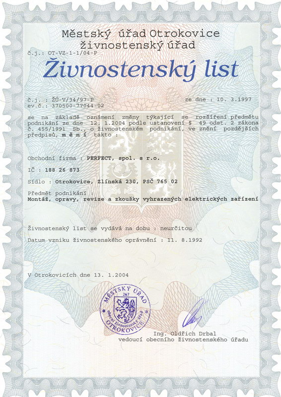 Společnost PERFECT, spol. s r.o. Otrokovice byla založena v roce 1991 a ve své montážní činnosti navázala na tradici elektromontáží Rozvodného závodu Otrokovice. Provádí výstavbu energetických sítí vysokého i nízkého napětí, nadzemního i kabelového, výstavbu trafostanic a rozvodů veřejného osvětlení i místního rozhlasu.